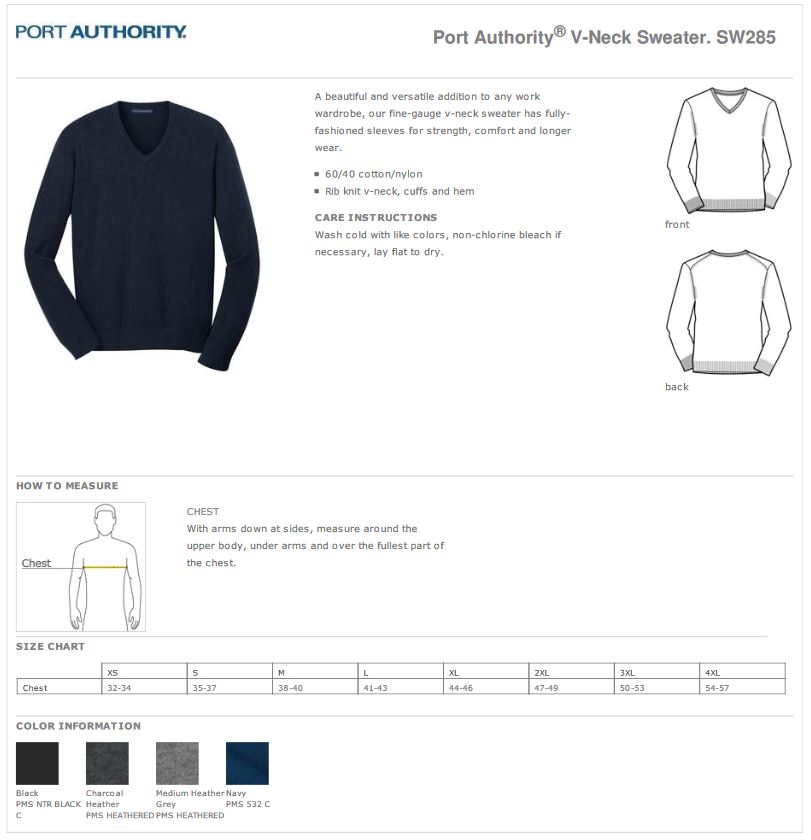 50-SW285 Size Chart